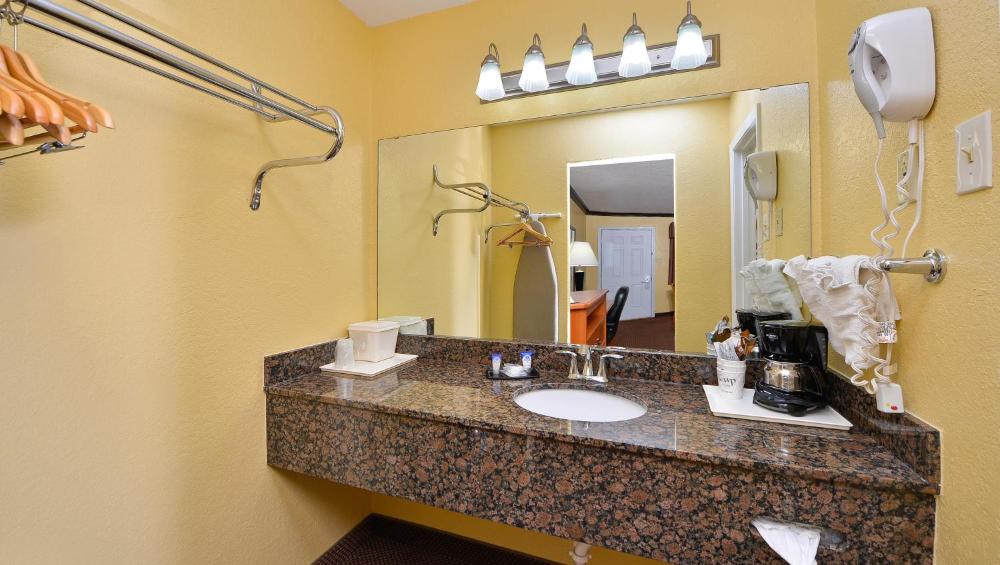 A cable TV, a refrigerator, and a coffee machine are offered in this room.